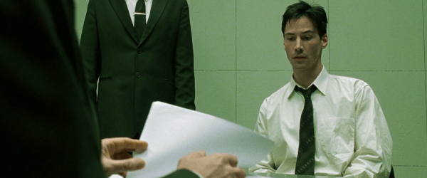 すると、ずっと目をつけていて、ハッカーとしてのネオはすべての法律において事実上有罪だとわれたのです。